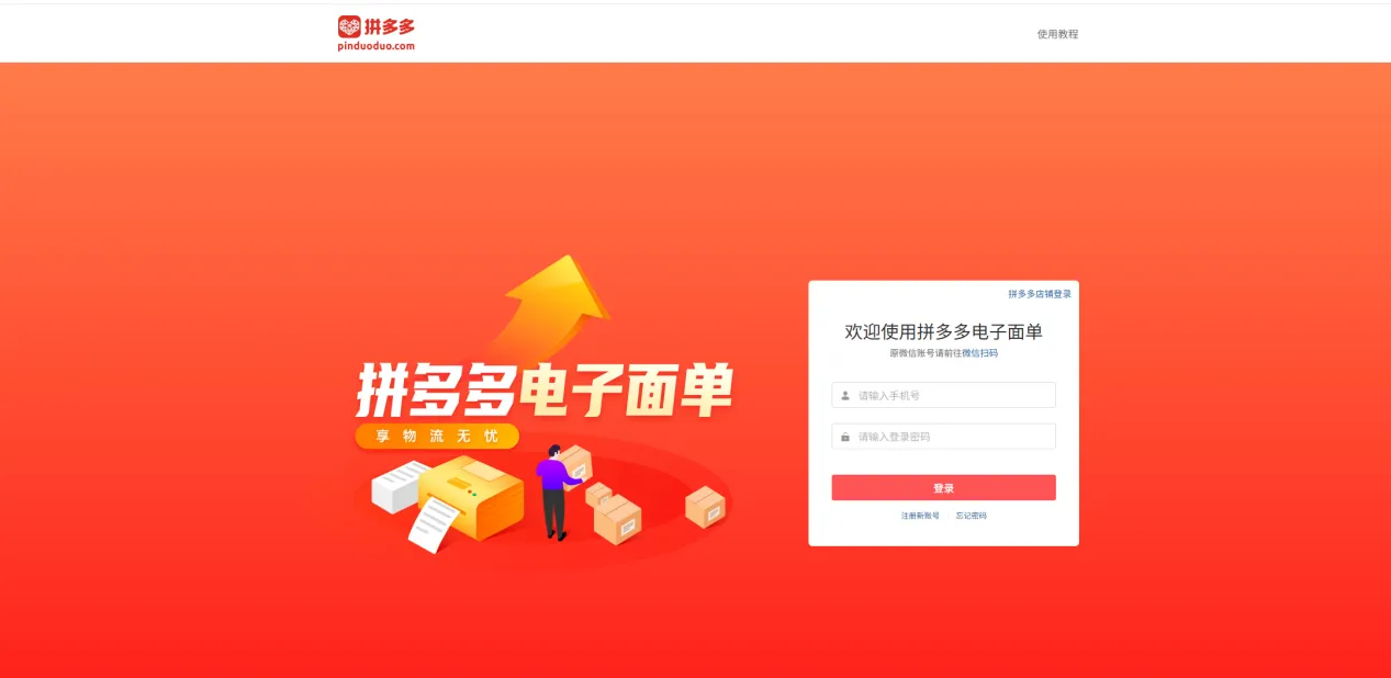 登录拼多多的店铺主账号,在店铺后台申请发货地的快递公司电子面单服务